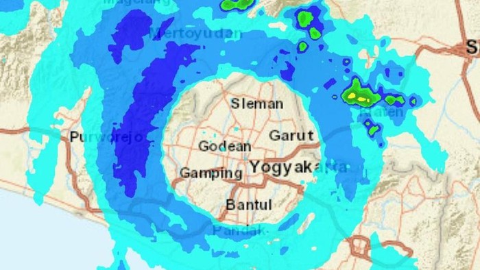 Foto radar cuaca BMKG menunjukkan awan di DIY melingkar terlihat seolah bolong viral. Ternyata ini alasan awan hujan melingkari kawasan Jogja.